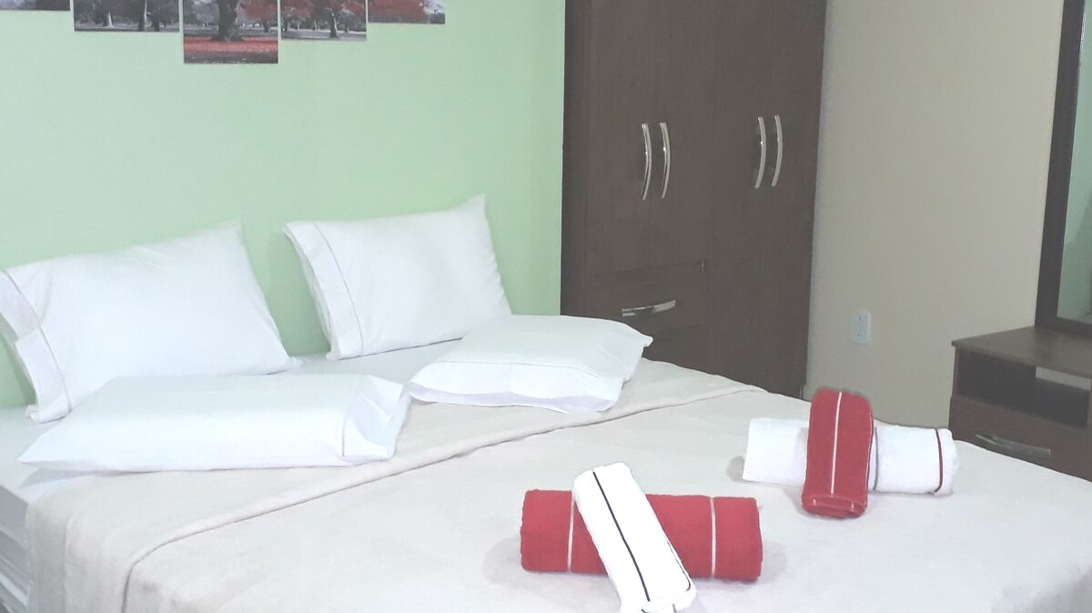 Take a break to relax in this charming city "DOMINGOS MARTINS ES, WITH THE THIRD BEST CLIMATE IN THE WORLD, WITH ITALIAN/GERMAN GASTRONOMY, WITH DAY AND NIGHT SPACES TO ENJOY A BEST QUALITY ARTISANAL DRAFT BEER AND A SQUARE TO STROLL AND DATE WITH TRANQUILITY FOR COUPLES AND THE WHOLE FAMILY. OUR FLAT IS VERY CLOSE TO ALL OF THIS, 100 METERS FROM "RUA DO LAZER AND THE MAIN SQUARE," ALL OF THIS WALKING WITH PLEASURE AND TRANQUILITY!