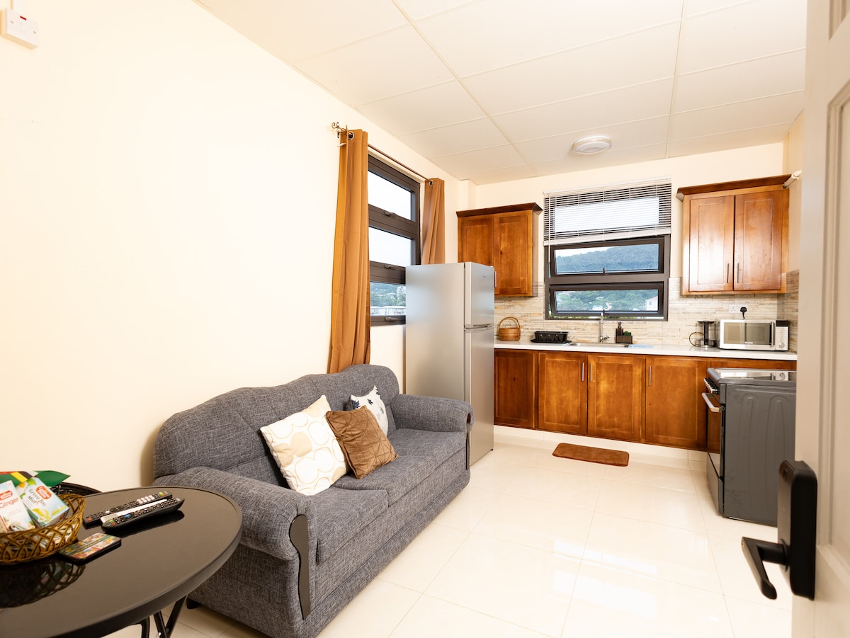 Unwind in Docky's Nest Apartment #2, a bright and elegant one-bedroom, one-bath retreat offering the best of modern comfort and tropical charm. With open living spaces, a fully equipped kitchen, air conditioning, and Wi-Fi, you’ll feel right at home. Set within a luxury multi-apartment property that includes three apartments and a suite, this space is ideal for guests seeking relaxation, convenience, and style in Roseau.
