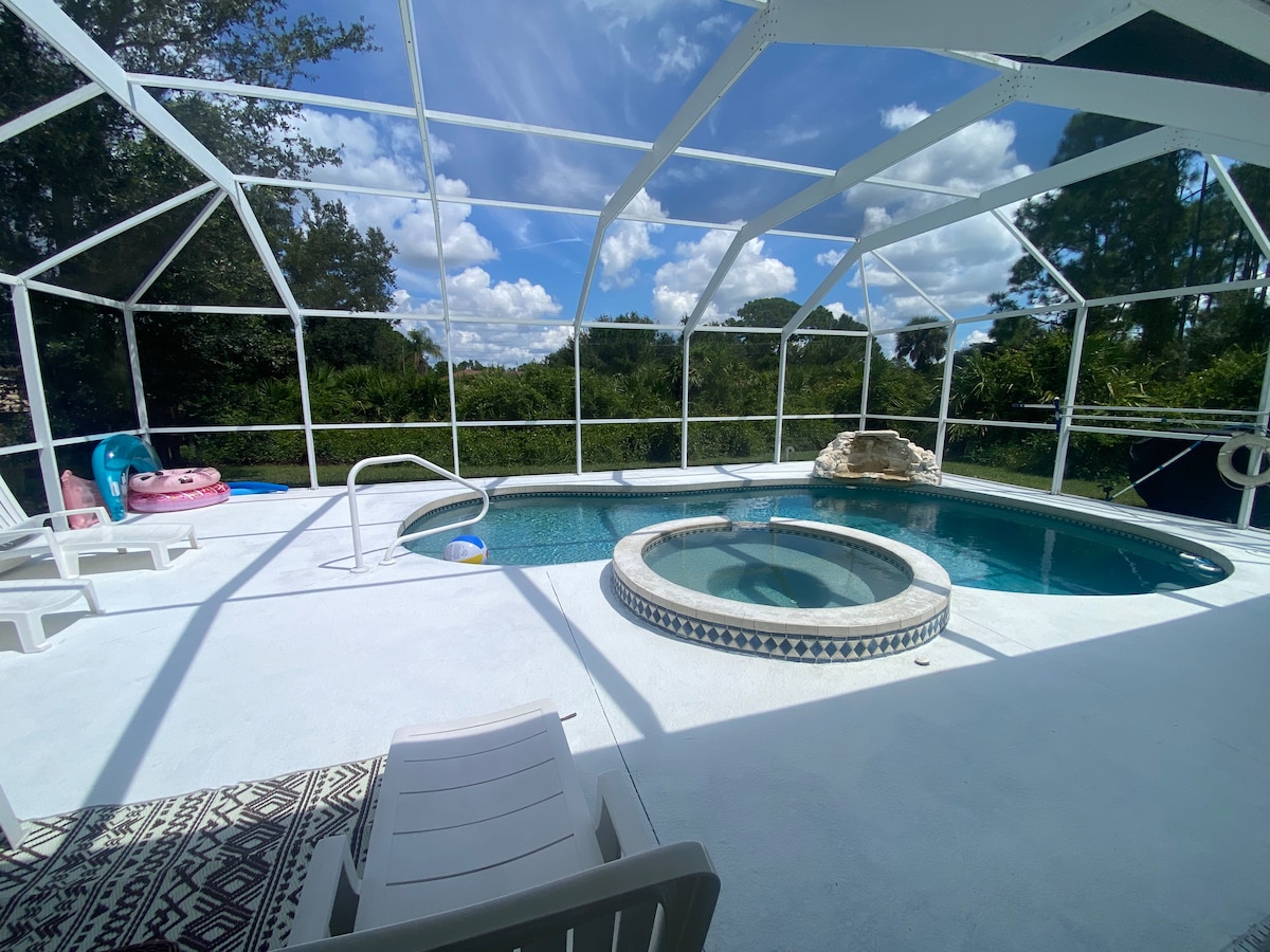 Welcome to Paradise! This 4 bed/ 2 bath dog friendly, heated pool & spa home features a large fenced in yard and oversized lanai area. It sleeps up to 6 guests & offers plenty of gathering space. Located within 15 minutes to Warm Mineral Springs, Atlanta Braves Spring Training and 30 minutes to Englewood/ Venice beaches. Located 5 miles off I75 & close to all the attractions of beautiful southwest FL. This home provides the perfect combination of a country home while being close to everything.