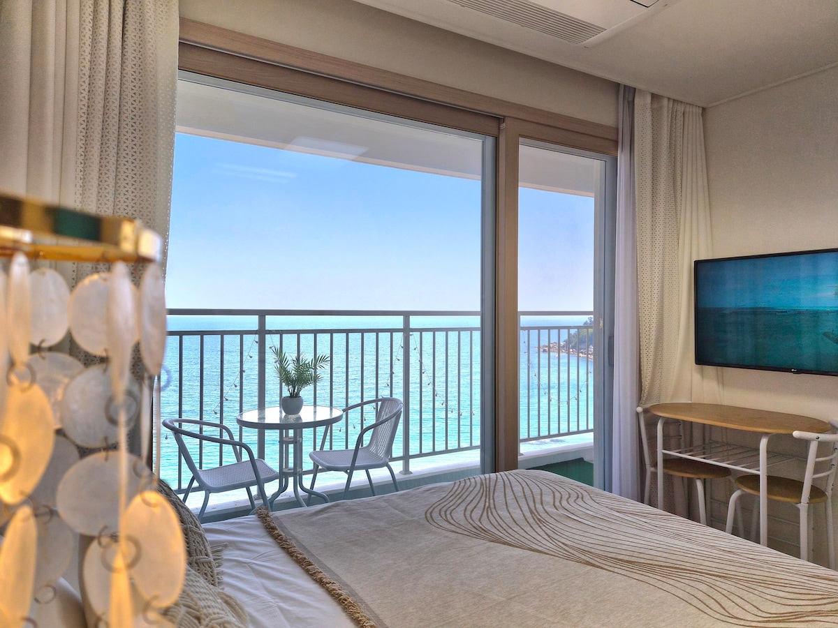 The sea facing Jukdo, the mecca of surfing! 30 seconds on foot, Lie in bed, open the curtains, and watch the waves and sunrise, and feel the coffee and the dazzling sparkle of the waves on the terrace. Calm waves and refreshing sea breeze spread out Enjoy a haven of enchanting beaches. As a peaceful accommodation, the coastline, which is just a few steps away from the lobby, boasts a view that is unmatched by others, just by sitting on the bed and pulling the curtains. For those who seek peace, rest Happy in this moka room prepared with this in mind Experience a vacation. It has been Your own way, With your own shoes Step by step, naturally You're walking!!! This is a simple and stylish room where you can welcome the change like a splashing wave and the dazzling ocean of tomorrow.