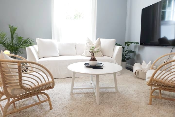 Whether you are just getting away for the weekend or looking for an extended stay, we are committed to creating a comfortable experience. Professionally cleaned & sanitized Great customer service High quality linens and towels. Very spacious 1100 sq ft 2 bedrooms and 1 bath unit with high ceiling. Each bedroom features a queen bed with foldable twin beds. Fully stocked with everything you might need for longer comfortable stay. Located in a very nice residential area.Dedicated driveway parking