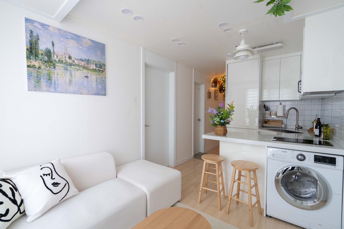 ⭐️초고층 파노라마 한강뷰 (Han River VIEW) ⭐️합정역 2분, 홍대역 10분 거리 (편리한 교통) ⭐️공항버스 정류장 5분거리 ⭐️최고급 침구 ( 면 100% 침구류) ✅ 사진보다 훨씬 아름다운 초고층 한강뷰 (저층과차원이다름) ✅ 여행의 안락하고 편안한 숙소, 기념일의 설레임에 도움이 되도록 객실 잘 준비하겠습니다. ✅ 청결과 보안을 우선순위로 운영됩니다. 게스트님들에게 최고의 서비스를 보답하겠습니다! 🏠 거실 - 멀티충전기 (타입별로 충전가능) - 65인치 삼성 스마트 TV (NETFLIX,YOUTUBE 프리미엄) - 빌트인 에어컨+공기청정기 - Free SUPER WiFi - GRANHAND Sachet 🏠 주방 - 2인용 그릇세트 +기본 조리도구 - 냉장고 냉동고 -인덕션, 전자렌지+ 세탁기 -와인잔 🛁화장실 - 핸드워시 - 칫솔,치약,레이디 세트 - 호텔 수건 - 호텔 바스타올 (요청시) - 샴푸, 컨디셔너,바디워시 - 초고속 엘레베이터