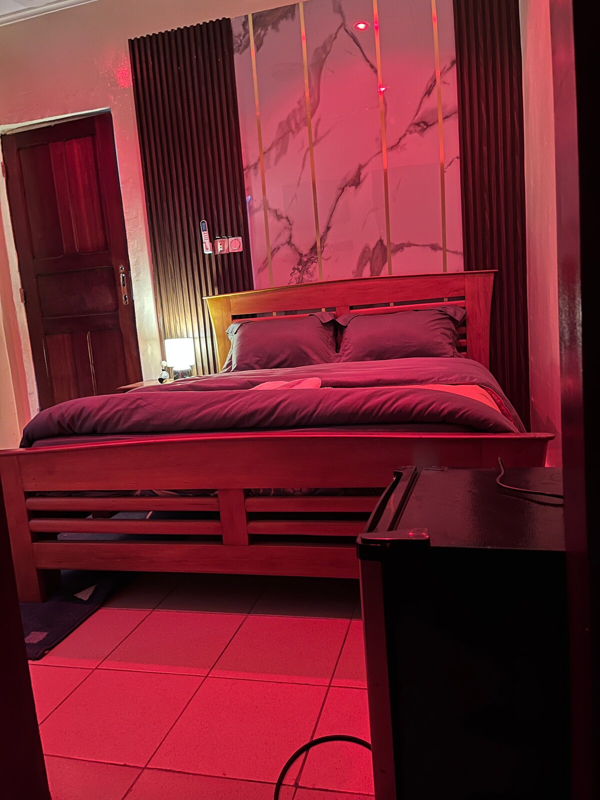 Chambre meublee luxueuse situee au coeur de la capital economique sur Rue Njo-Njo Bonapriso Douala en face de la station d'essence MRS a 2 juste mins de l'hotel la Falaise Bonapriso. Espace unique et memorable pour vos sejours dans un cadre tres propre et reposant. Climatissee - Chauffe-Eaux - Hyper-securisee - TV - Free WIFI- Free Parking nous offrons Pizzas - Boissons - Restaurant - Cuisine - Frigo - Microonde - Salle de sejour pour votre confort. La reception est ouverte 24/7
