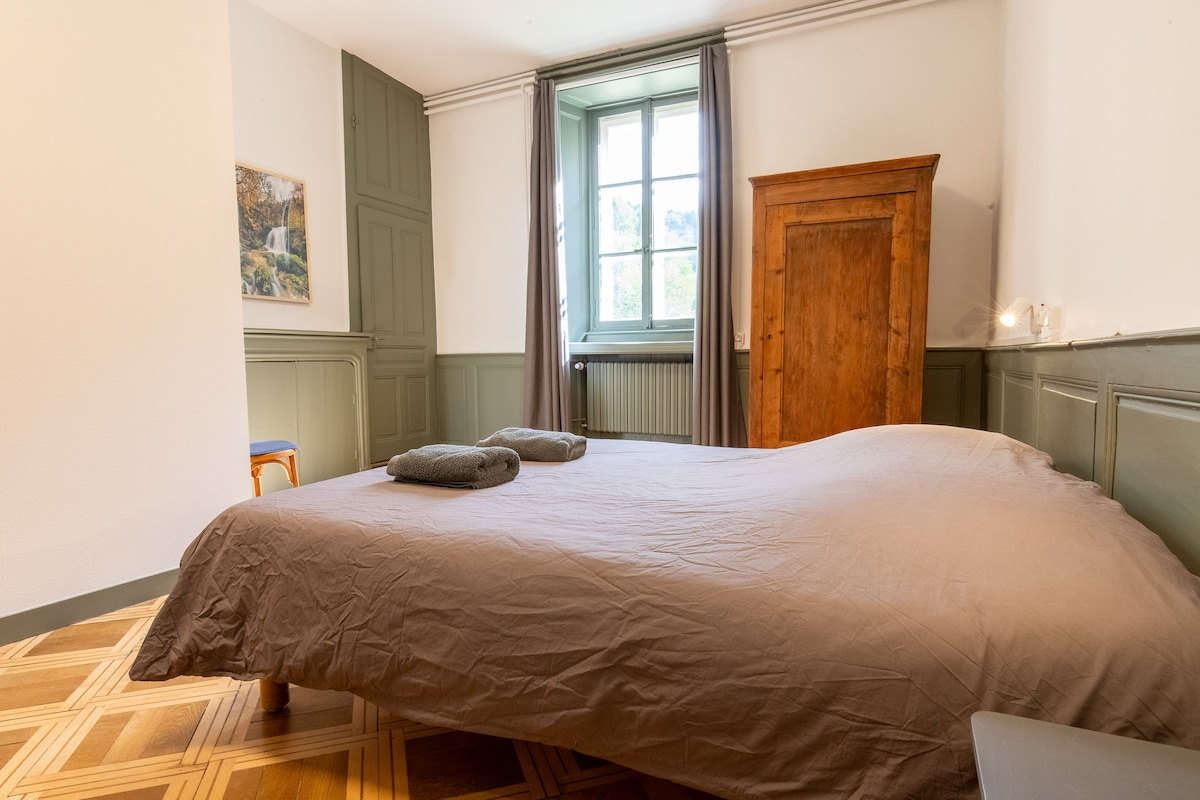 A unique stay between nature, culture, and heritage. Nestled at the bottom of a protected valley, our hotel located in the former monastery of Val de Consolation welcomes you for a unique experience of rejuvenation, calm and wonder. Welcome to room 102. Located on the 1st floor, overlooking the garden, with 1 double bed and 2 single beds, a bathroom (shower + toilet), sheets and towels included.