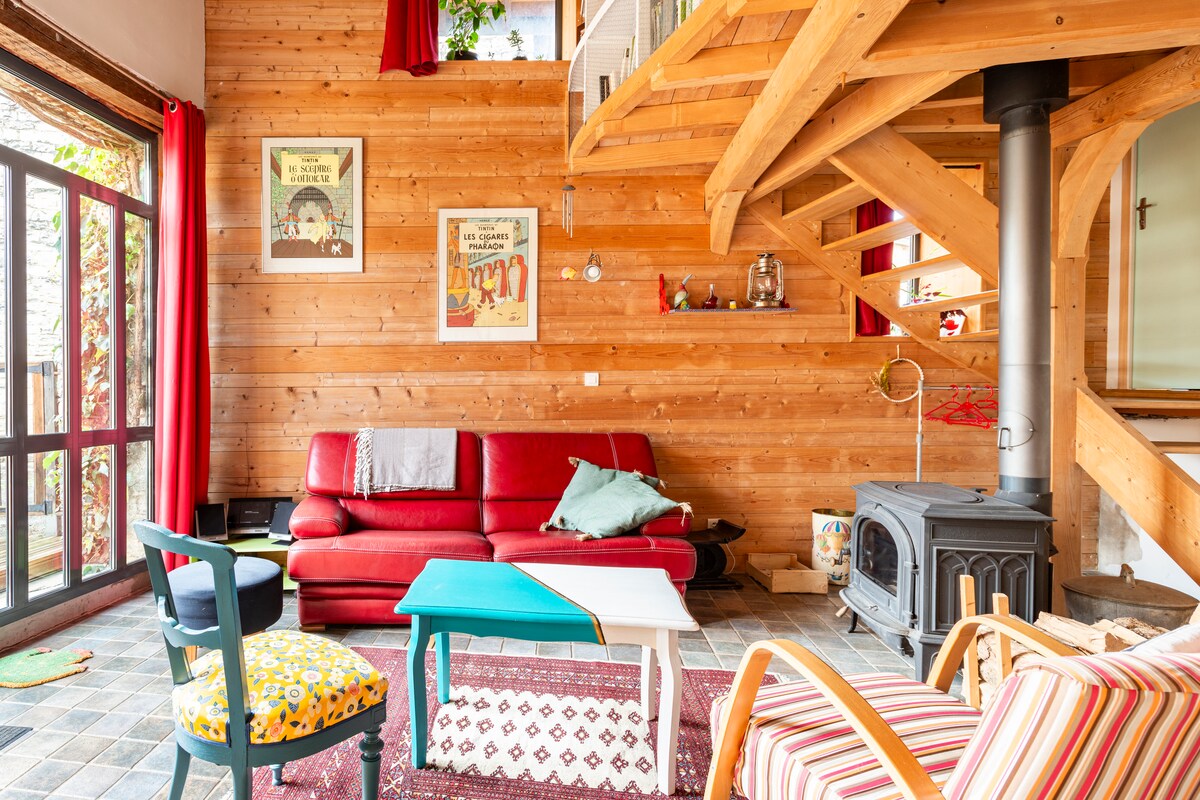 Renovated studio with balcony in a former tinsmith's workshop with breathtaking panoramic views. Come and relax in one of the most beautiful villages in France nestled in the heart of the Loue Valley, which enjoys a magnificent natural environment with its 15th century church and old winegrowers' houses. Suitable for hikers, athletes, and nature lovers. Shops and restaurants nearby. 🥾🌈🧘♀️