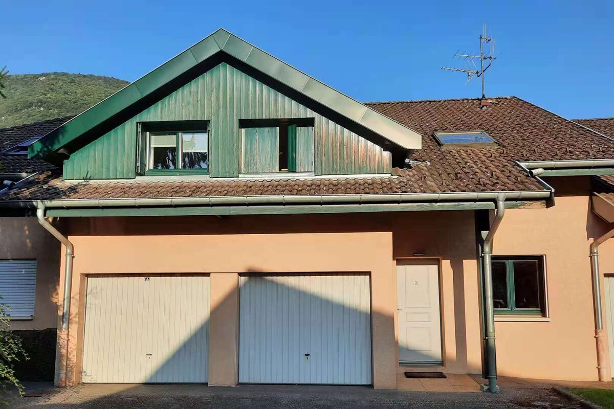 Enjoy with family or friends this recent accommodation, located on the second floor of my house. Large bay window with mountain view, garden, beautiful amenities, fully equipped. It has a garden and a private terrace on the ground floor of the house with barbecue, table, sun loungers, small living room... a 10-minute walk from the lake, the nature reserve, 100 m from the bike path. Nearby Water activities, Hikes Paragliding hot air balloon bus and boat to Annecy (little Venice of the Alps)