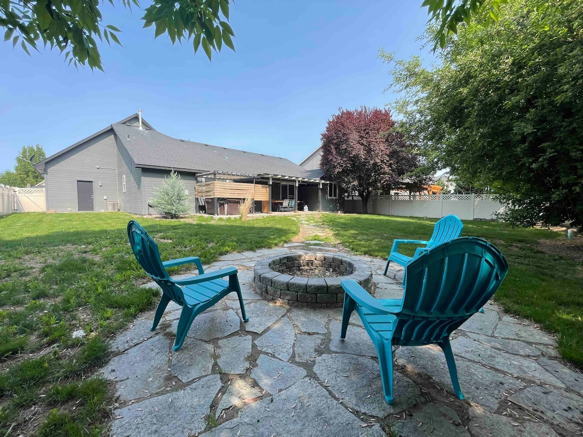 There isn't another Harris Ranch home like this available for your family vacation or company retreat. Situated at the base of the Boise Foothills, this beautiful home is the right size for your family to relax, unwind, and to find some solitude. Watch a movie in the theater room, grill on the covered patio with a built-in natural gas barbecue, play a game of ping-pong, or hop around on the trampoline. During summer months, you're also welcome to take a dip in the community pool!