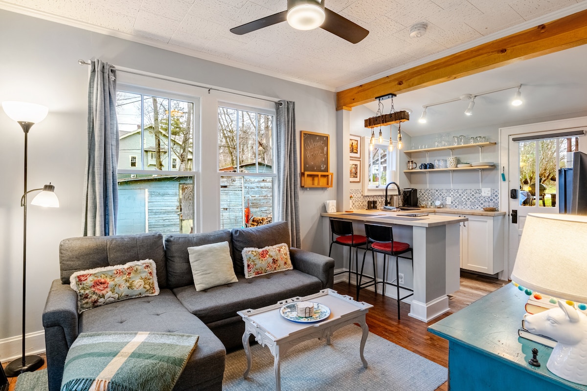 Enjoy a stylish experience at this centrally-located home in South Knoxville. It is perfect for one or two couples or friends enjoying the city or the nearby Smoky Mountains. The home has two bedrooms (one king, one queen), two bathrooms, full kitchen, gas grill and off-street parking for two cars. Work from "home" at the desk using fast AT&T Fiber WiFi. Or chill out streaming shows on the 55 inch Smart TV using the free internet channels or your own password for Netflix, Prime, Disney, etc.