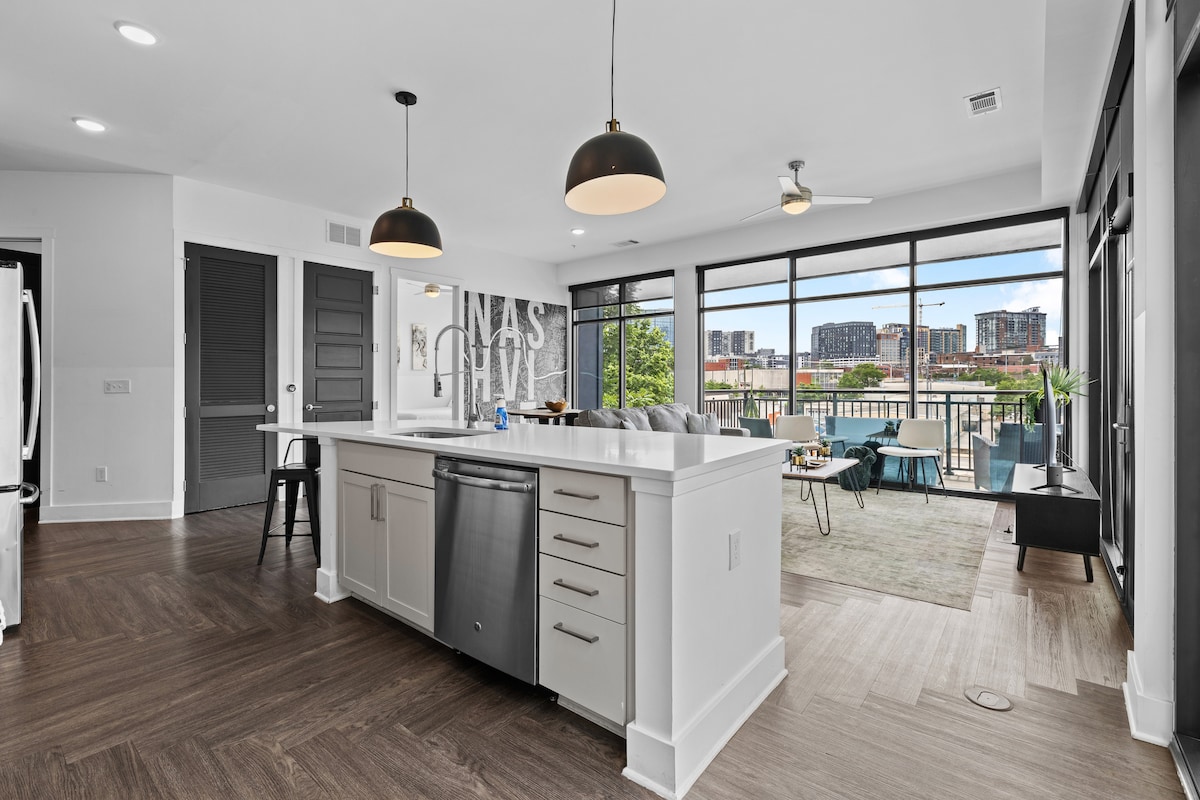 3BR Suite: DT Nash, Full Kitchen & Living Room