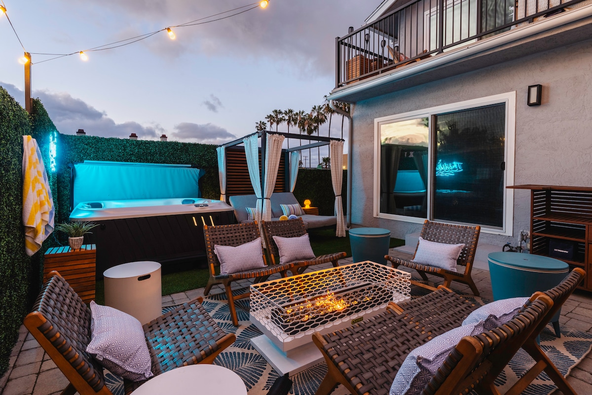 Escape to this stunning renovated beach house just 4 blocks from the ocean and pristine beaches. Located one block from vibrant Shops on Newport, a short walk for local cafes and boutiques. Perfect for groups up to 16, featuring a private fenced backyard with outdoor fireplace and built-in BBQ kitchen. Inside, enjoy a gourmet kitchen with quartz countertops and high-end appliances, a great room with gas fireplace, luxury bedding, and three full bathrooms. Includes beach gear!