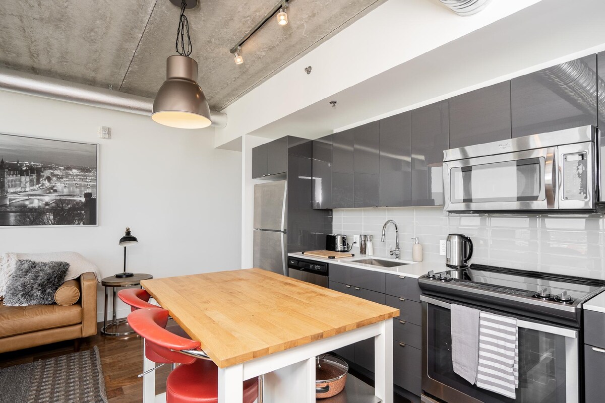 A modern, high-ceiling loft designed for comfort. Fully equipped, well prepared, and welcoming year-round. FREE PARKING STALL with 24/7 security on site INCLUDED! Steps to Jets Arena, Historic Exchange District, The Forks. Direct skywalk access to ALT Hotel, The Merchant Kitchen, Brown’s Social House, and Tim Hortons. The Health Sciences Centre is just minutes away. Building security patrols all floors, with cameras in elevators and hallways, and strictly enforces quiet and rules.