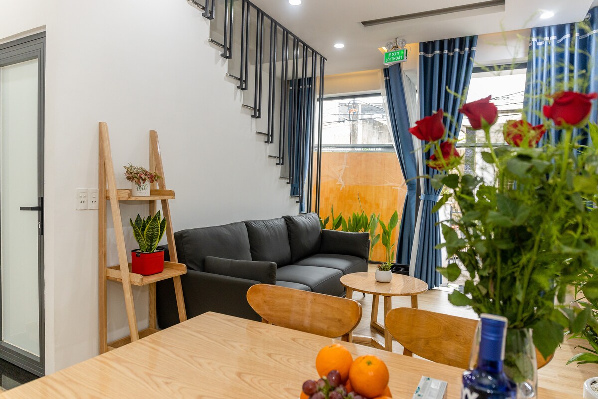 TeeMi House is located in Central Danang, which is 5 minutes walk to Han Bridge and 5 minutes walk to Han Market with 5 bedrooms with private bathrooms, a lovely rooftop patio and a swimming pool for kids, lovely living room connecting to dining and fully equipped kitchen area. The entire house is yours with private entrance, so TeeMi house is perfect for a family trip or a big group of friends. Also, TeeMi House is in a 2 metres wide residential alley by 3 minutes walking from main street.