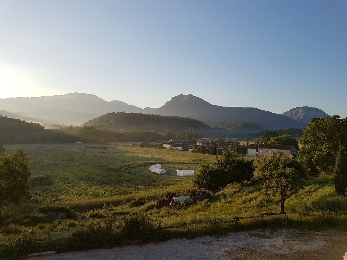 Cottage with panoramic view of the Drôme River and mountains