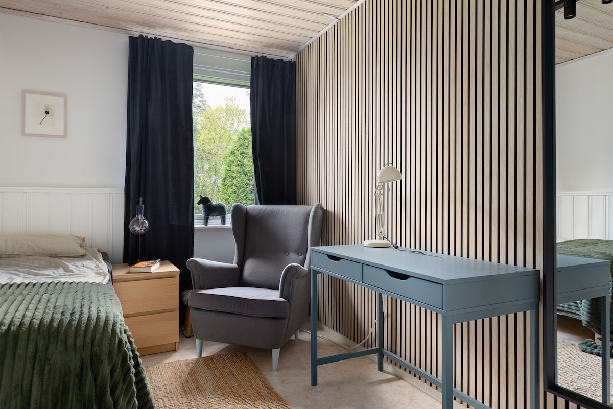 One-of-a-kind stay in luxurious 30 sqm tiny house built 2024. Perfect for 1-4 persons. Only 12 minutes walk to the metro that takes you to central Stockholm in minutes. This home offers a unique, stylish interior. Enjoy a private patio and a separate entrance with a simple code lock. Located in a quiet residential area, it's close to the subway for easy access to central Stockholm while providing a peaceful retreat. Discover the perfect blend of comfort and convenience in this unique tiny house.