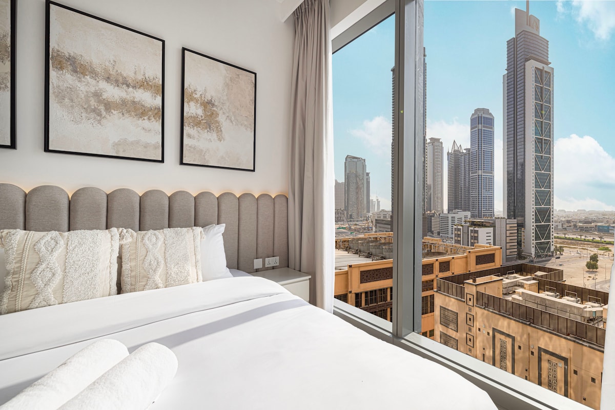 Escape to this cozy 30th-floor retreat with breathtaking panoramic views of Dubai's skyline, coastline, and landmarks like the Burj Khalifa. This luxurious home features a plunge pool on the balcony, modern interiors, and a serene atmosphere. Thoughtfully equipped for a seamless, relaxing stay for two, it's the perfect elevated escape in the heart of the city.