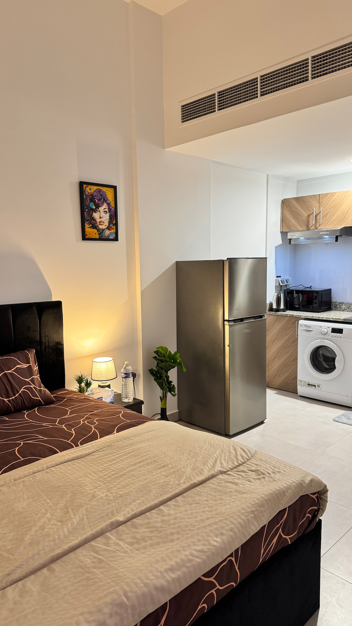 This unique place has a style all its own.Welcome to your stylish studio in JVC, where modern comfort meets urban convenience. Start your day with freshly brewed specialty coffee from the bean-to-cup coffee machine while enjoying the views from your private balcony. The studio features a cozy king-sized bed, a sleek kitchenette, and a modern bathroom. Perfect for a relaxing and unforgettable Dubai stay. Book Your Stay Now!