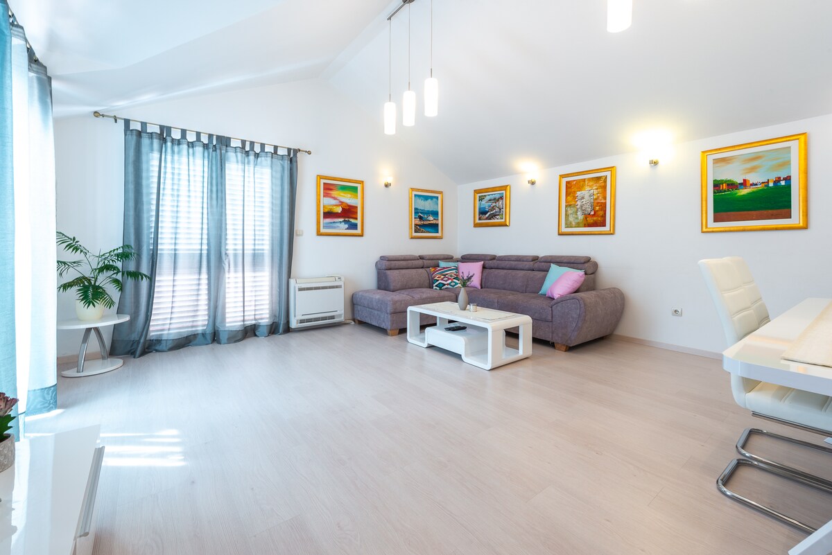 NEBO is located in a newly renovated attic of a two hundred year old house just outside the City Walls. The distance from the south entrance and drawbridge is just 50 yards. The apartment can accommodate four people, as it consists of a double bed bedroom and two extra beds in the living room. There is also a kitchen, living room, and bathroom. It has a private terrace and a shared infinity swimming pool. NEBO is part of the house which consists of three apartments, MORE, SUNCE, and NEBO.