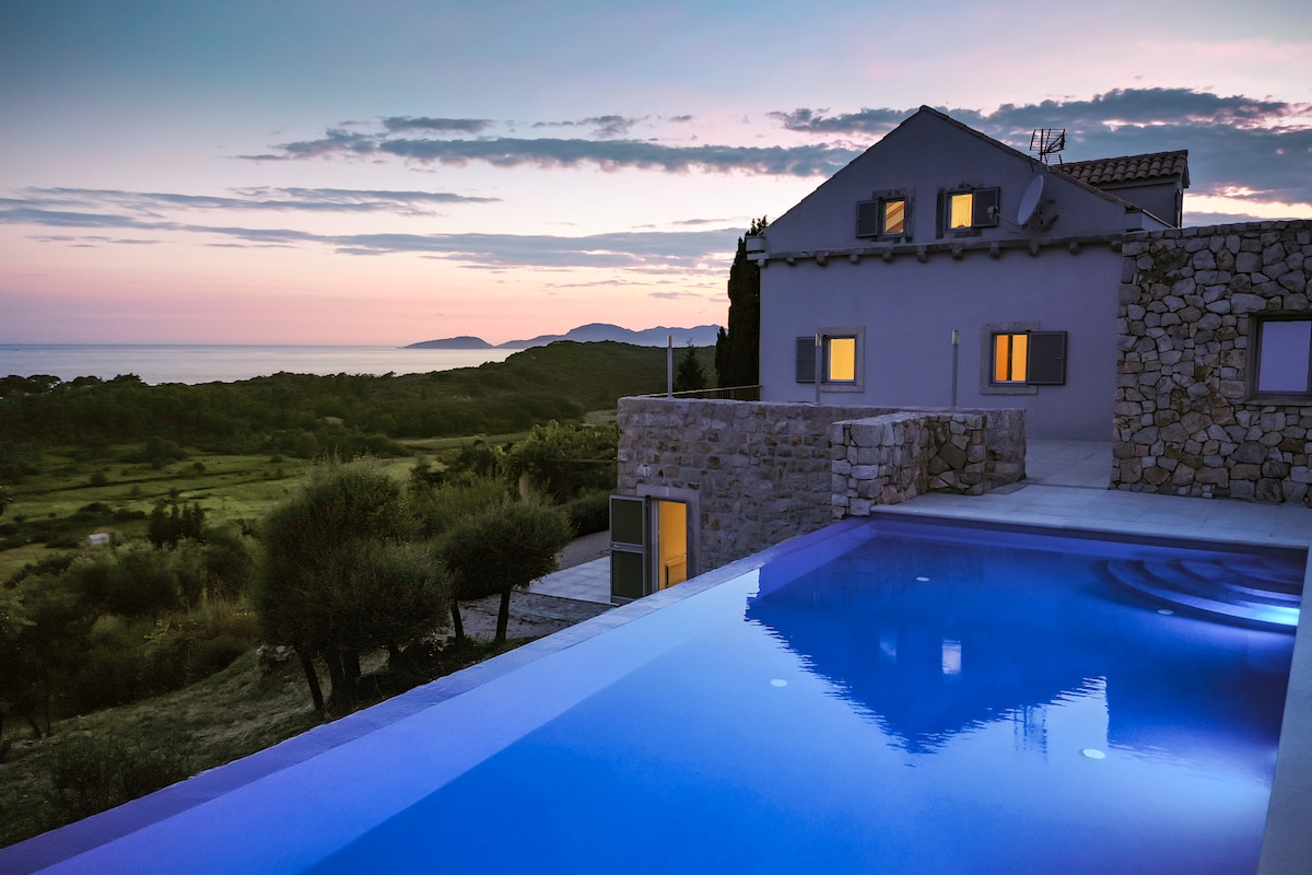Villa Lu is a NEW modern 5 bedroom/6 bathroom villa with infinity swimming pool located on the seaside, away from the hustle and bustle.The sea is only 10 metres away which makes the villa unique. The villa position ensure spectacular view on Adriatic sea and it is perfect place for a wonderful holiday experience. Entire Villa - Living room with the kitchen and dining room, 5 bedrooms, 6 bathrooms -FREE WIFI and PARKING -Beach, bus station, restaurant, lungo mare are in front of the house