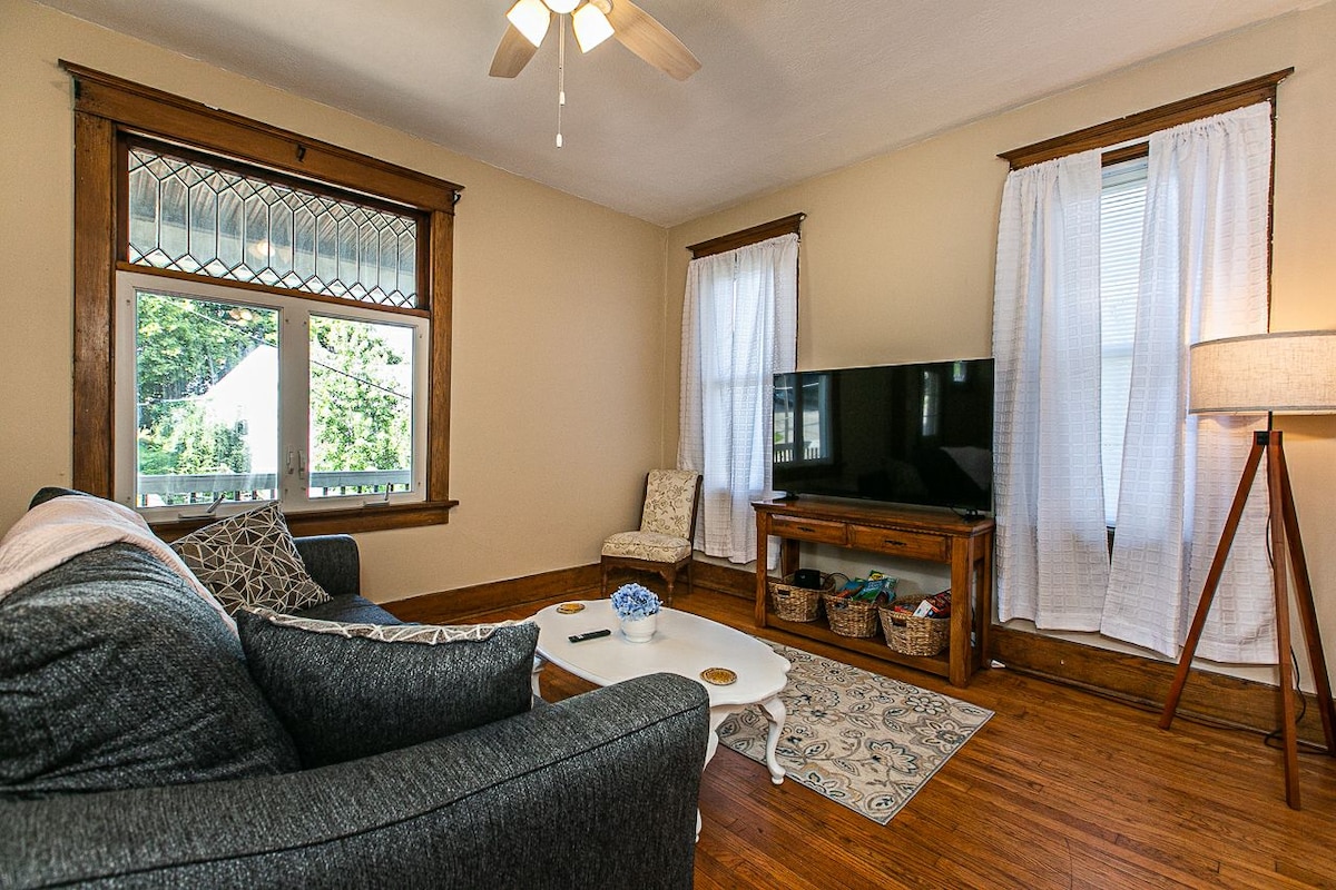 Centrally located & steps from University of Dubuque and Finley Hospital. In-between downtown and central city. 4 bedroom home with a formal dining room, full kitchen, bathroom with a tub/shower and plenty of space to relax. Start your morning with Bob& Lou's or Charlotte's (Hartigs) across the street. Well behaved pets welcome with a fully fenced in backyard. Galena is a short 20 minute drive *Please book with total guest count including pets if applicable