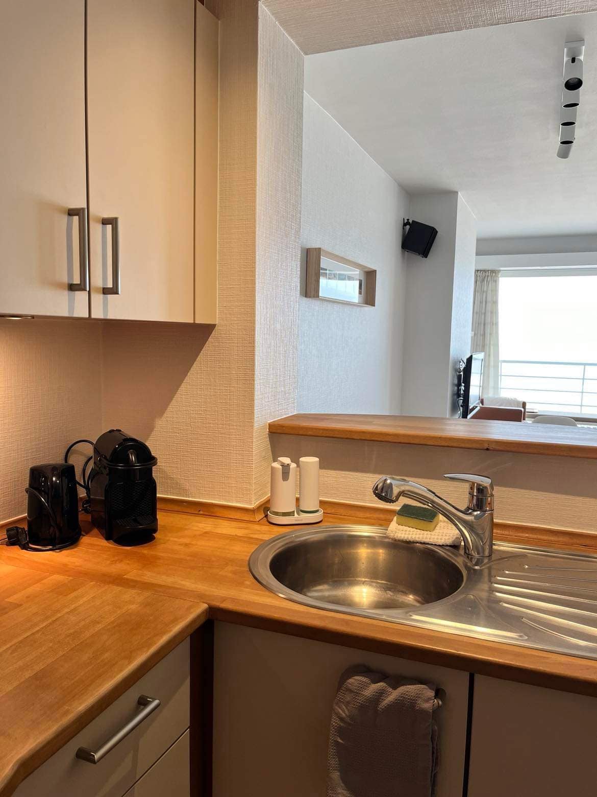 Welcome to this beautiful, cozy and sunny appartment located two steps from the beach and perfectly located in Knokke-Heist! The appartment is on the 7th floor and has a beautiful side ocean-view. It has a fully equipped open kitchen, a cozy living area with a dining table, a coffee&tea corner and a sofa bed. The bedroom has a comfortable double bed and a bathroom with rainshower, the toilet is separate!