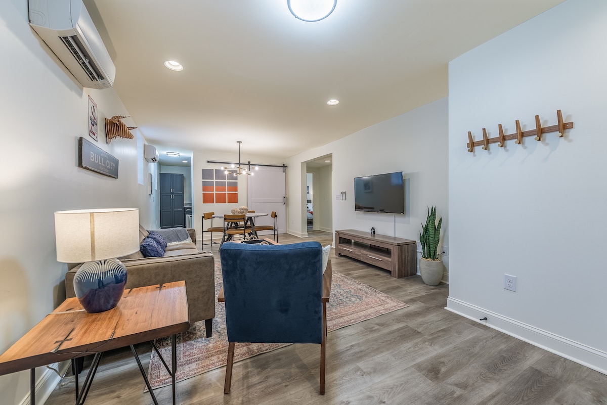 The Bull Den~Duke/Downtown 2 bed/2 bath~no stairs!