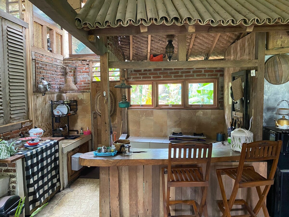 Feel the experience of staying at Wooden Villa with complete facilities on the side of the rice fields, next to the artificial river with a direct view of the beautiful Mount Ciremai. The villa is homey, peaceful, cool and very comfortable for you and your family. Additional Tent capacity of 2 people if you want to add 2 extra beds. There is a campfire area to relax & warm up at night. Free firewood 2 bundles. There is a billiard table, free for guests who stay.