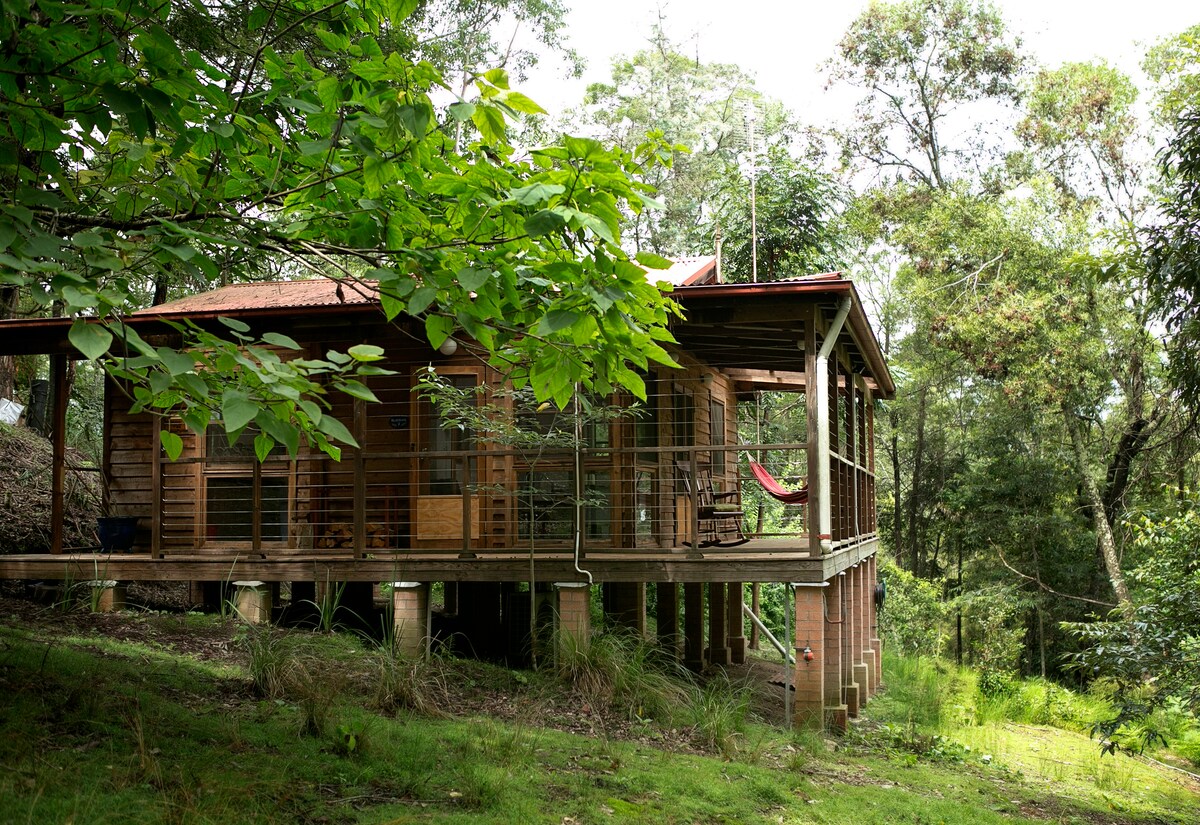 With views from the elevated deck to the river and the rolling hills, you will find a place to unwind, relax and recharge in this unique and intimate country escape. Once a storage shed for corn and grain, now a luxurious, cosy retreat for two. Breathe the fresh country air, take a dip in the pristine waters of the river, enjoy a wine by the fire while stargazing, or picnic on the hillside. Immerse yourself in the rainforest enjoy and the many walks of the National Park. Sorry No Pets.