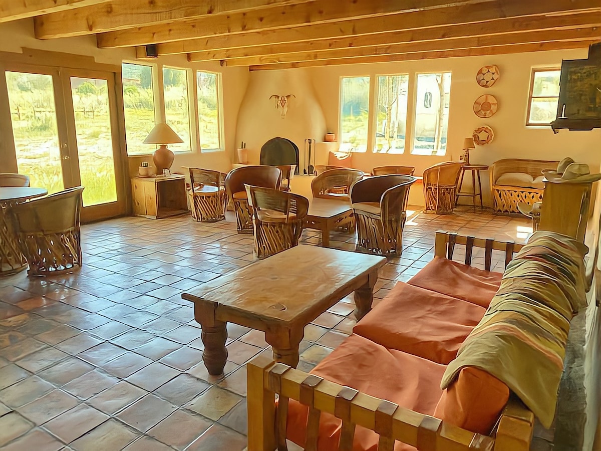 Perfect for a couple or friends, the Message tree is the ideal place to crash after your mountain hike. It’s a cozy room with lofted beds — a queen sized bottom bed and a full sized bunk. Made of adobe clay, the Adobe Inn, both inside and out, pays tribute to the the area’s history, which includes Coloradan, New Mexican, Mexican and Native American cultures. The walls are adorned with hand-painted art paying tribute to the Mimbres tribe whose ancestral land we are on.