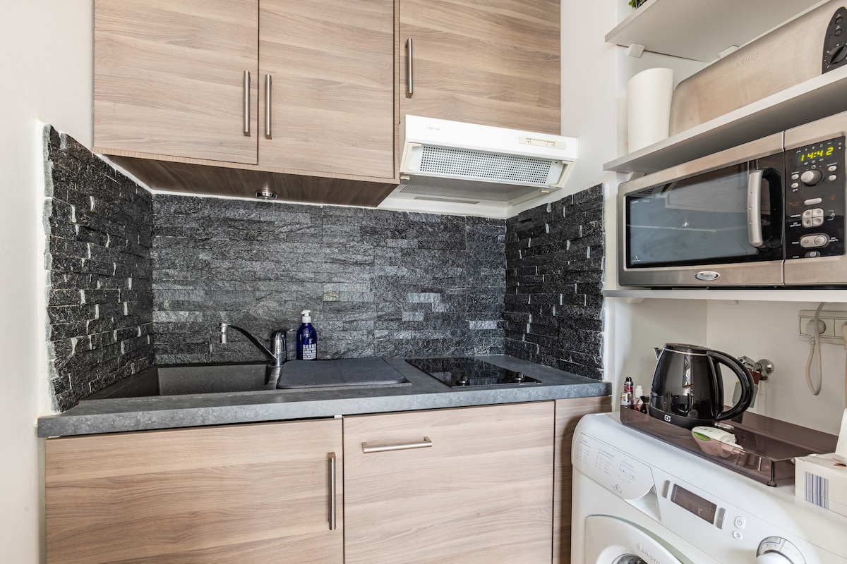Studio avec mezzanine, situé proche de la Tour Eiffel dans le prestigieux 7ème arrondissement. Donnant sur une cour calme, il accueille jusqu’à 4 personnes avec deux lits doubles (en bas et en mezzanine). Grande table pour vos repas, Smart TV avec Netflix, cuisine entièrement équipée. Salle d’eau séparée avec douche, WC et lave-linge. Idéal pour découvrir Paris, à deux pas des Invalides et de la Tour Eiffel.