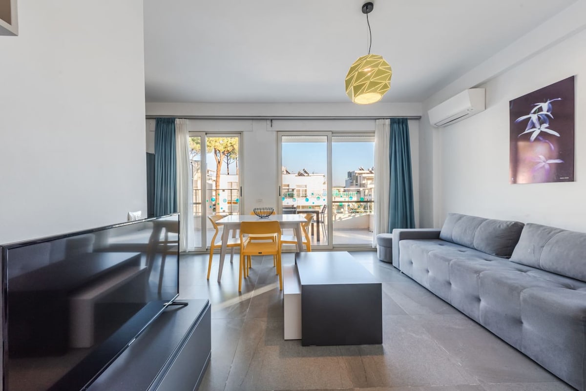 The apartment is newly furnished with modern furniture located in a modern building which is very close to the beach and close to many facilities like supermarkets, restaurants, bars and also city centre. A private underground garage for the security of your car or cars is available. With additional costs, entertainment consoles like PS4 or music speakers may be added.
