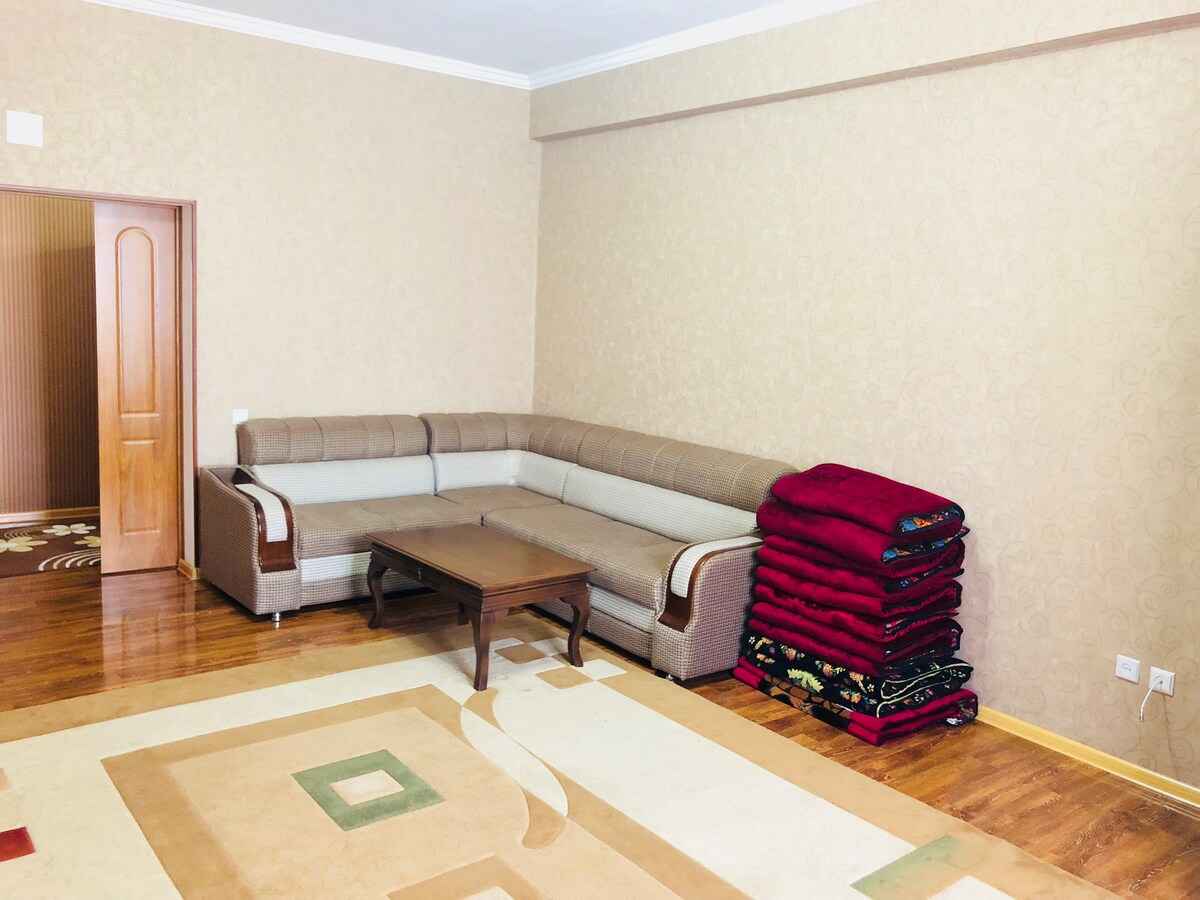 Enjoy your stay in the heart of Dushanbe, steps away from attractions and cafes. The apartment is decorated in a boho style with a touch of Tajik national colors and charm. For your convenience and well-being, we've installed a multi-stage water filtration system. Enjoy the freshness of Tajik water straight from the tap. We warmly invite you to stay in our home.