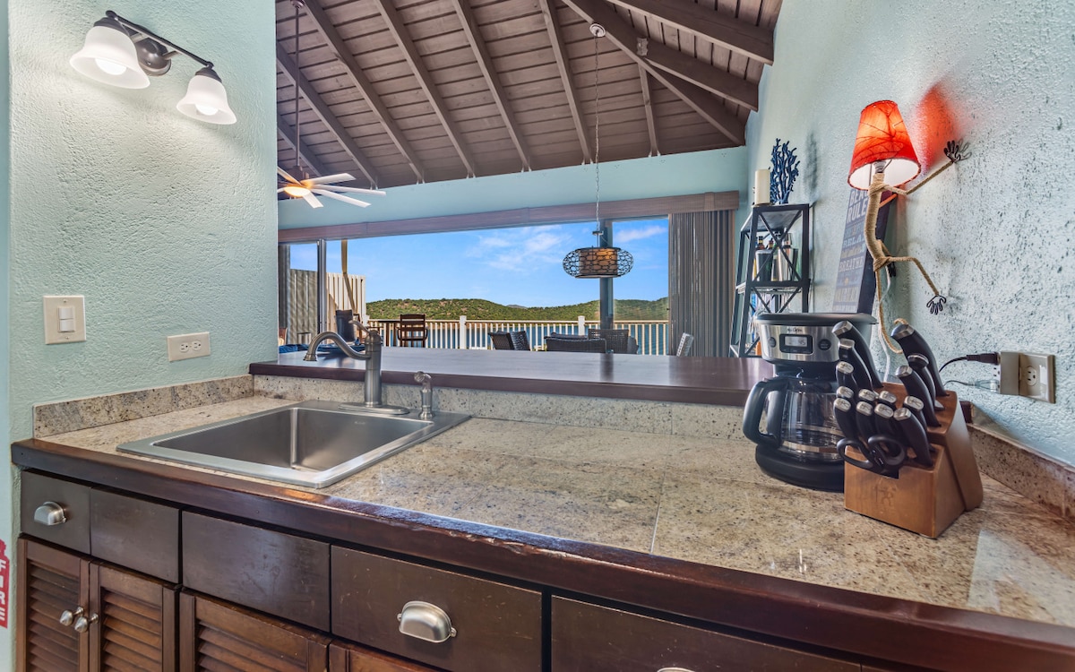 What a Vacation Home! Amazing Views! Freshly Remodeled! Welcome to C'est Jolie, newly decorated hilltop corner unit featuring breathtaking views of St. John, Tortola & Jost Van Dyke. 1BR/1BA vacation home is yours for however long you book - each time you walk in the view will take your breath away! Brand new furniture, fresh paint, 2 ACs, 2 TVs will have you on island time in no time. Perfect East End location next to Margaritaville 2 minutes to Coki Beach, 3 minutes to Lindquist Beach.