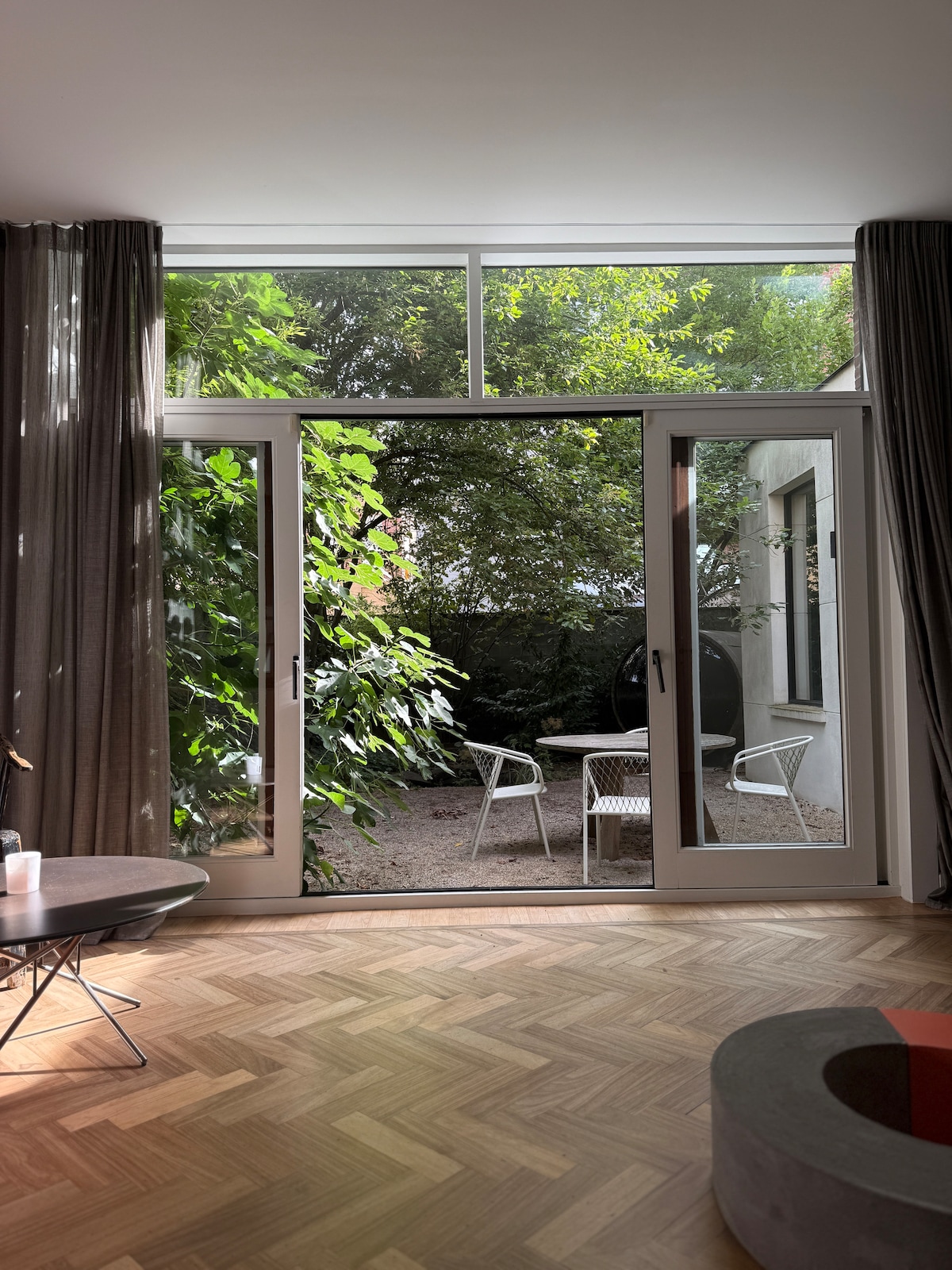 The apartment is situated in the city center of Ghent, between Portus Ganda and Friday Market. It is a part of the counter room of an old brewery and encloses a private garden. You enter via a private side door in the counter room. The apartment consist of original elements, like the wooden floors and original floor tiling.