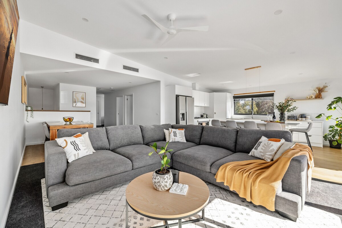 Escape to our luxurious Snowy Mountains retreat, blending designer style with cozy comfort. Relax by the log burner on cold nights with underfloor heating for toasty toes, or soak up summer evenings on the spacious sun deck. Amenities include a chef's kitchen, 65" Smart TV, outdoor bio-ethanol firepit, king beds and a garage for all your gear. Perfect for unwinding after your alpine adventures, The Lodge is located just 35 mins from Thredbo and Perisher ski resorts and 7 mins from Jindabyne.