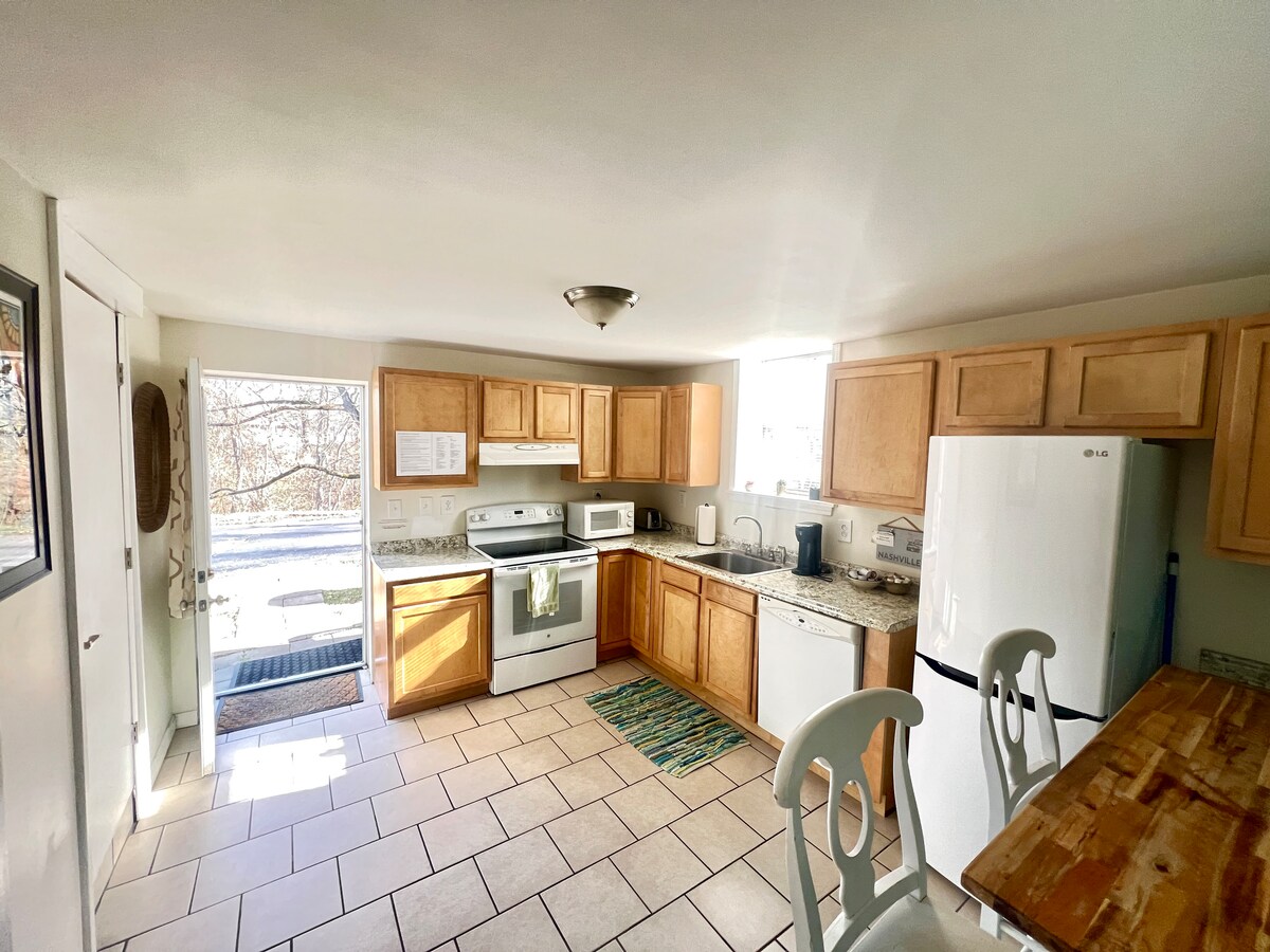 We recently finished the renovation of our house, which includes a cute, cozy one bedroom guest suite. Guests will have access to their own private entrance via their own 16 x 24 foot deck. The suite includes a bedroom with blackout curtains, a sound machine, bathroom with a bathtub/shower combo, kitchenette (full size fridge, sink, dishwasher, induction burners, toaster oven, microwave), dining table and a living space with a couch, reading nook and TV.