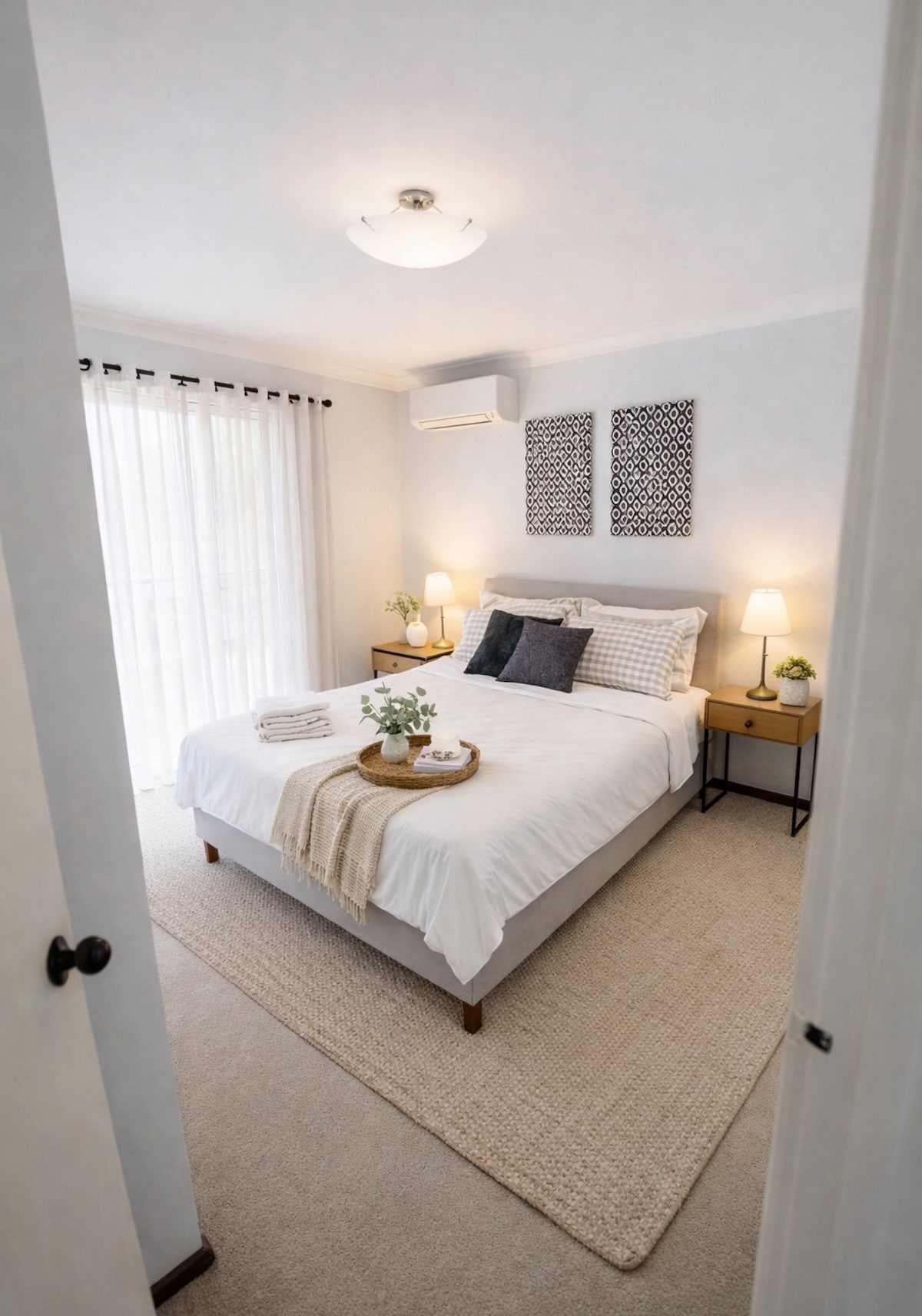 The features of this classic home include tall ceilings and large rooms with beautiful wooden floors and lead light windows. Fully renovated ensuite, laundry, kitchen with dishwasher. Includes air con, outdoor decks. Located near the wonderful cafe strip of East Victoria Park. The house is 100m from the Carlisle train station .Pet friendly. Please note that if you have booked for 2 people, only one bedroom will be allocated. ( There is a $40.00 linen fee for the 2nd bedroom).