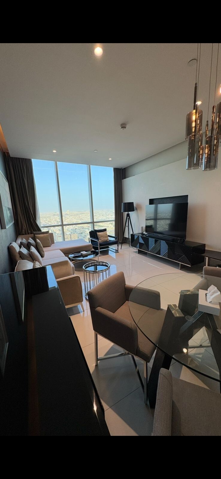 A modern apartment designed for an exceptional stay, located in one of Riyadh’s finest neighborhoods with a stunning view of KAFD. It features an outdoor seating area with a screen and projector for enjoyable evenings. For your comfort, the bed includes a high-quality 14cm extra layer. “We also offer event coordination services for special occasions (including cake and accessories) for an additional fee with prior booking, ensuring an unforgettable experience “