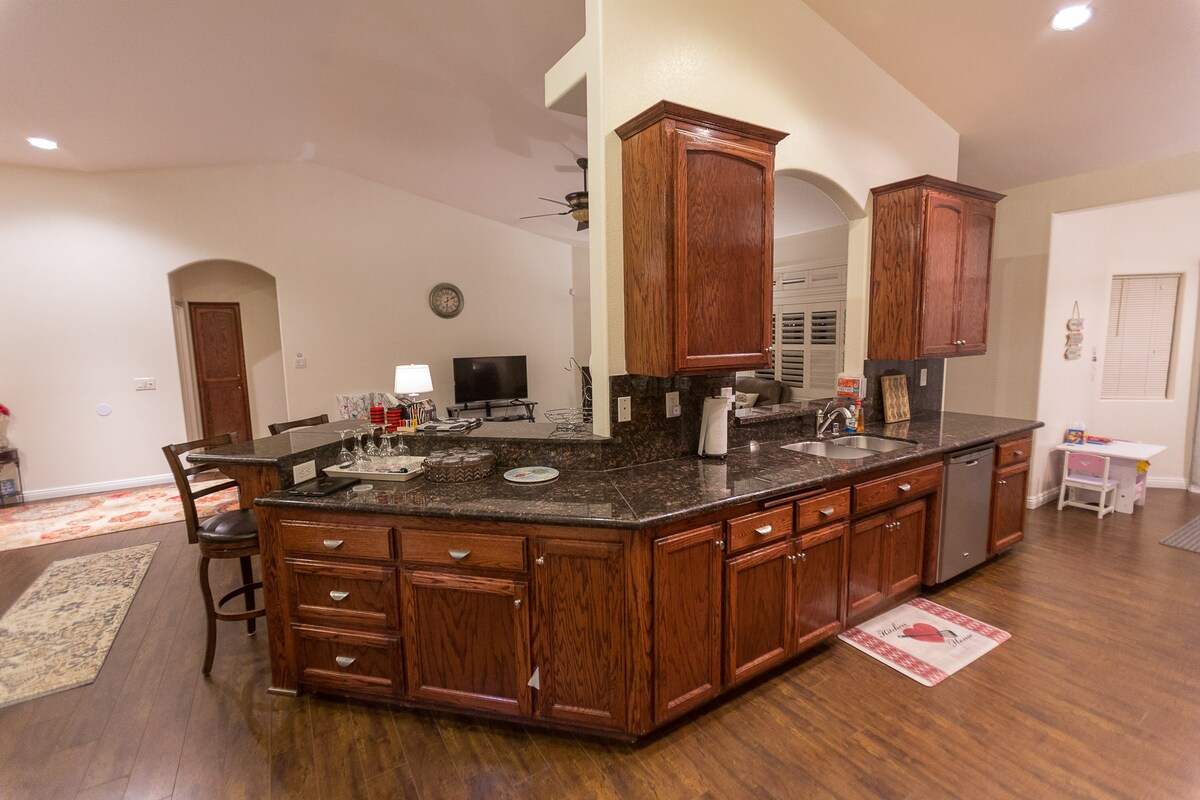 Property is ACCURACY APPROVED by Airbnb. Please read descriptions before booking!! Agree to House Rules when booking No Smoking, No Pets Gated property with 24/7 guest entry keypad code access RING, ADT cameras & alarm system Split level. 3 bedrooms, 3 beds 2 full baths, MB Ensuite Jacuzzi tub/shower Guest accessible garage with remote opener Owner Controlled WIFI THERMOSTAT Guest request options: Temp Up or Down On/Off No Smoking 🚭 No Fireworks in City of Pahrump No Vapes No Pets