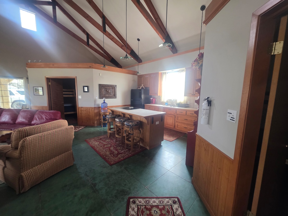 Lake levels are currently low! While the dock is still accessible and water is deep enough to fish off the end, it is a tricky walk to the water. The sun is shining and we’re ready to host your fam this summer at Pirate's Cove. Our premier cabin is located waterfront, with stunning views for a relaxing getaway. We offer self check-in for contactless stays! Fast internet for streaming movies at night, private lake front dock with kayaks and paddle boards for use.