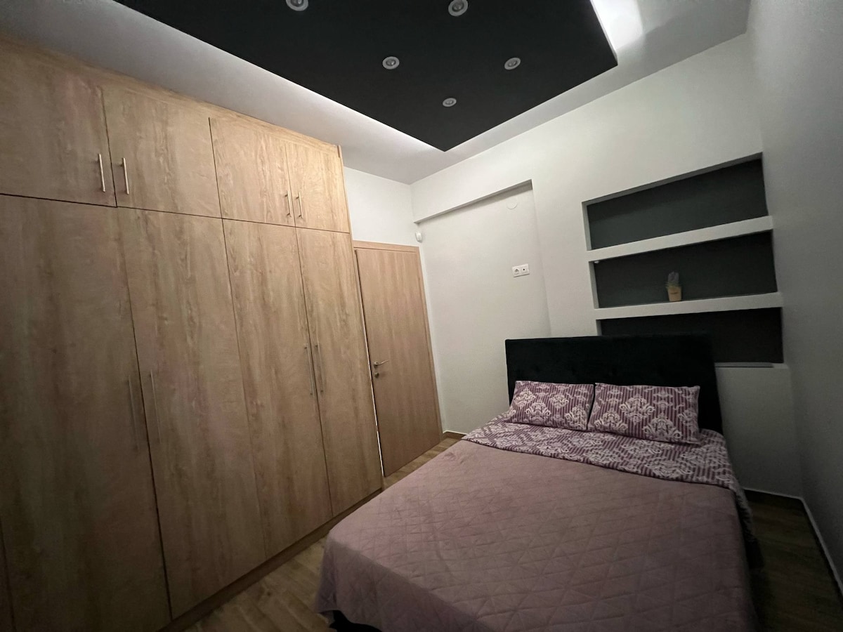 A fully renovated ground floor apartment with a private entrance in the centre of Sindos. The space includes a bedroom with a double bed and a desk, a living room with a sofa that converts into a double bed, an equipped kitchen and a balcony. It is located just 2 km from the Thessaloniki International Airport and the Thessaloniki Industrial Area. It is just 20 minutes by car from the center of Thessaloniki.