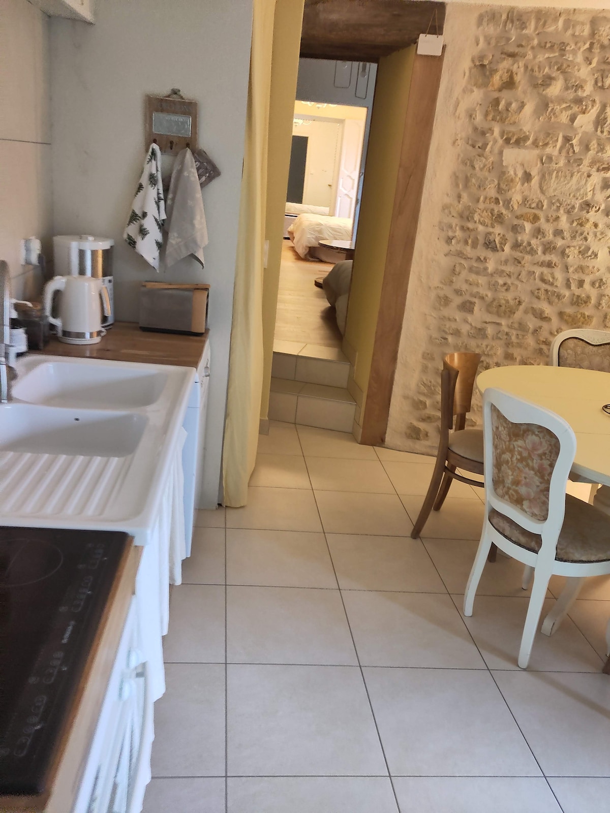 Gîte douillet 3* (3épis) de 40 m2, proximité MAIF, MSA, DARVA, Altima Assurances et Zone Com. de Chauray. 20mn Gare et Centre Vi Logement aménagé à l'étage d'une dépendance au dessus des garages d'une propriété close, accès par escalier extérieur en pierre donnant sur terrasse de 16 m2. Chauffage central, Connexion WIFI, TV écran plat. Cuisine américaine tout équipée (four, LV, réfrigérateur, congél, micron-onde, cafetière Senseo. Lit 160 + équipement BB Salle d'eau avec grande douche italienne.