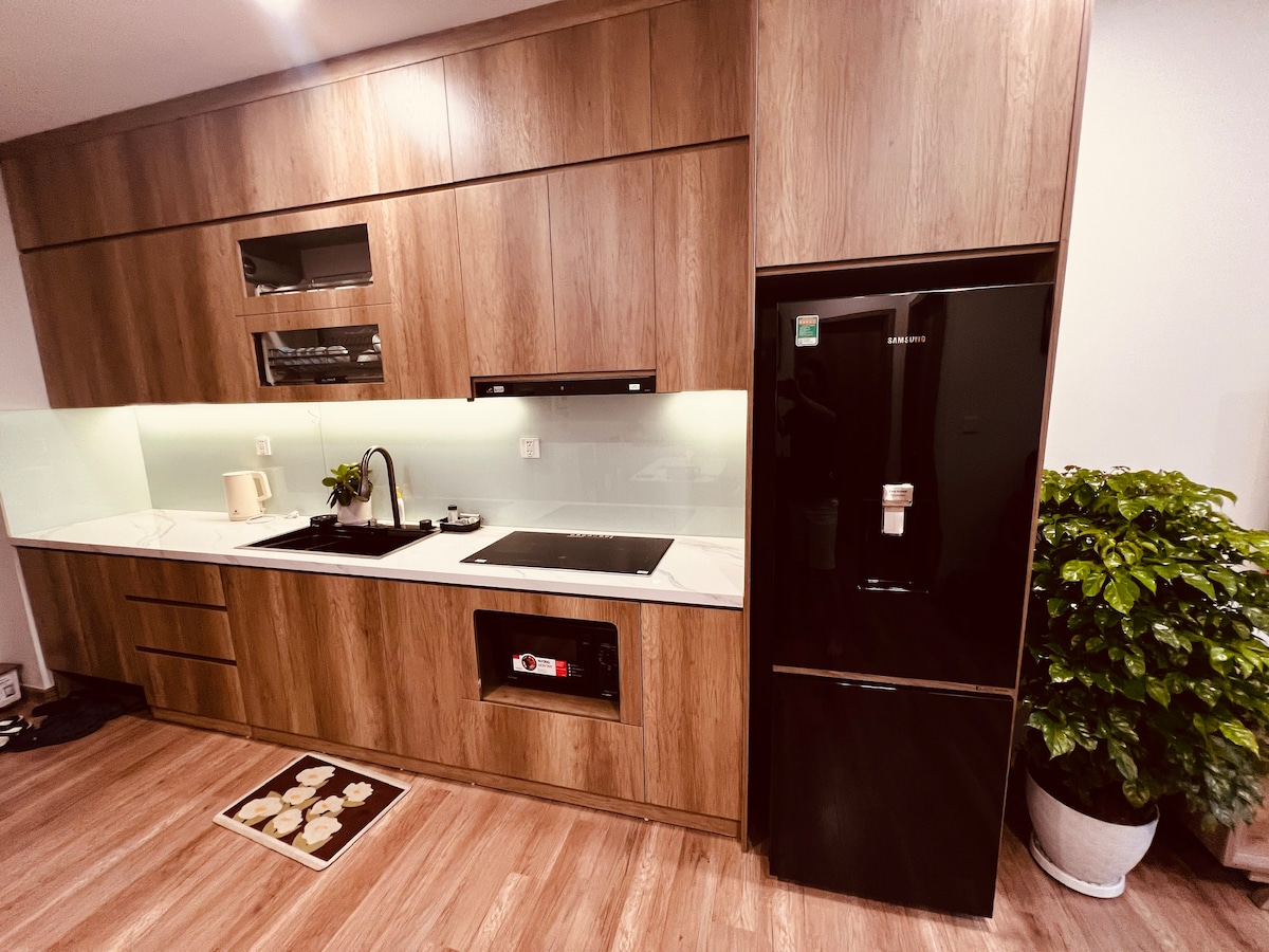 Modern & comfortable studio apartment in the heart of the city Are you looking for a place that is both comfortable as home and has a beautiful view to relax? Our lovely studio apartment is located on the 29th floor, with a refreshing view of the green island and full facilities: fast internet, kitchen, soft bed, separate washing machine & dryer to ensure the best care. Suitable for couples or young people working remotely, who want to combine work and enjoy a memorable vacation.