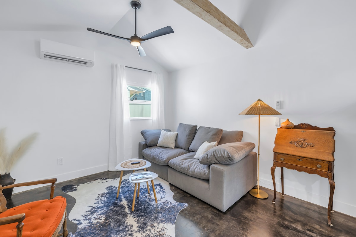 This newly constructed carriage house was built to embrace the character and charm of the main house, a 1928 craftsman bungalow. Your 2nd floor 1 BR apartment is well appointed with a full chef's kitchen, a living room with a pull-out sofa, and washer/ dryer. Enjoy a morning cup of coffee or a glass of wine in the evening on the large porch. 2 min walk to Grand Central restaurants, coffee shops, boutiques, or grab a bike or scooter for a 5 min ride to Downtown St. Pete or 15 to the beaches.