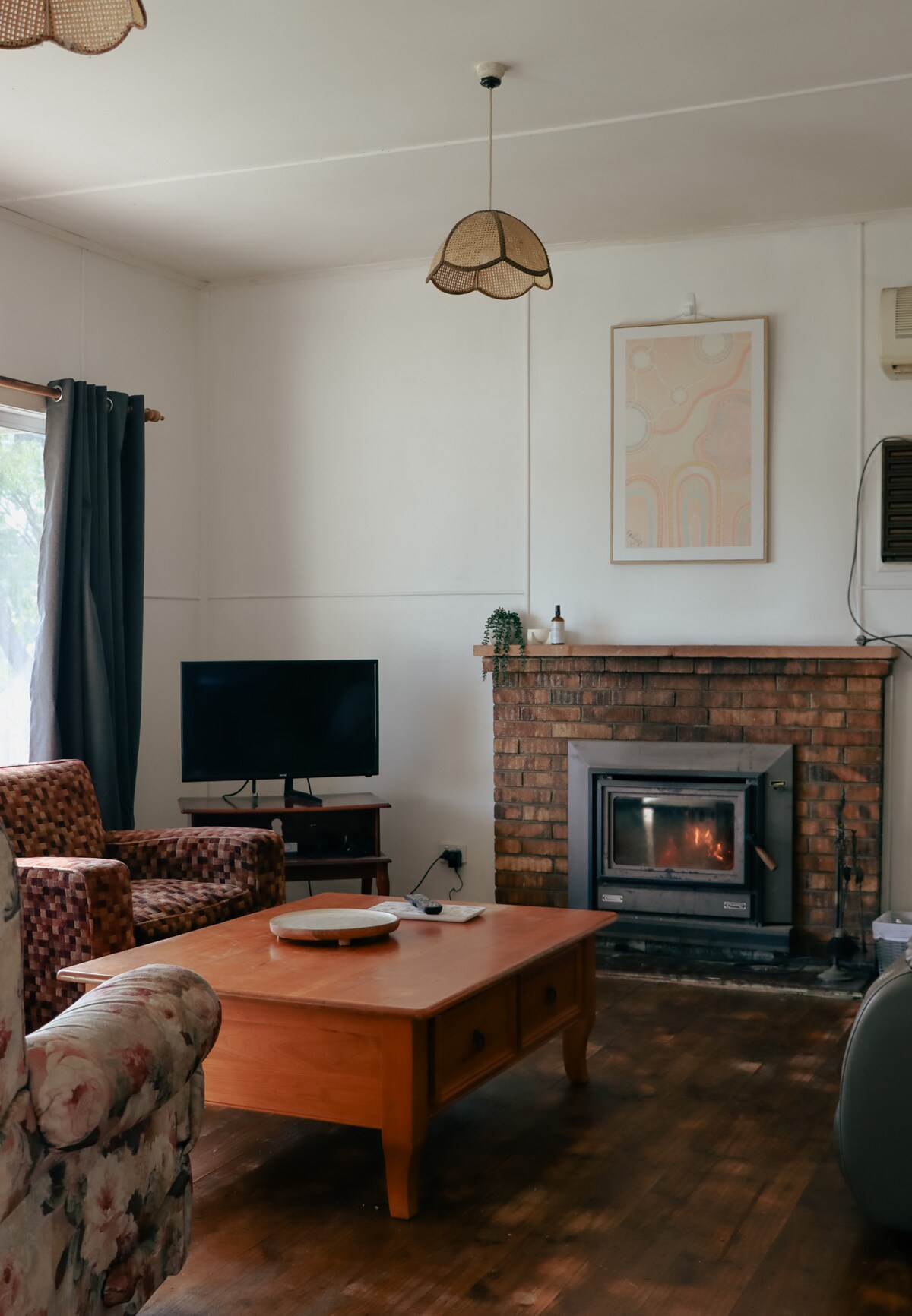 Built c 1854 as a coaching station, an addition was built in c1876 - this section is now available for guests. The apartment sleeps up to 4 adults with a queen sized bed in a separate bedroom, as well as a very comfortable queen sized sofa bed in the huge lounge area. There is a fully equipped kitchen also full separate laundry. There is an electric 'log fire' heater as well as split systems in both the lounge and bedroom. Free wifi and built-in USB charger.