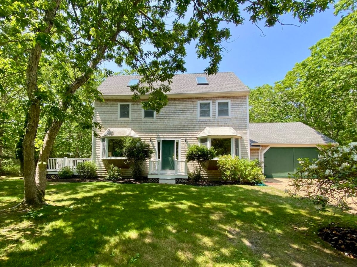 Just a short walk to Edgartown's shops & restaurants, this cape style home features open concept living, stainless steel appliances, bamboo floors, oversize 2 car garage, washer/dryer & updated features! The master suite includes a sitting area, walk in closet & attached bath with walk-in shower, soaking tub & double vanity. Additional 3 BRs include queen/twin beds & 2 full baths. Home has high ceilings & lots of windows. Kitchen sliders lead to outdoor brick patio with BBQ & dining area.