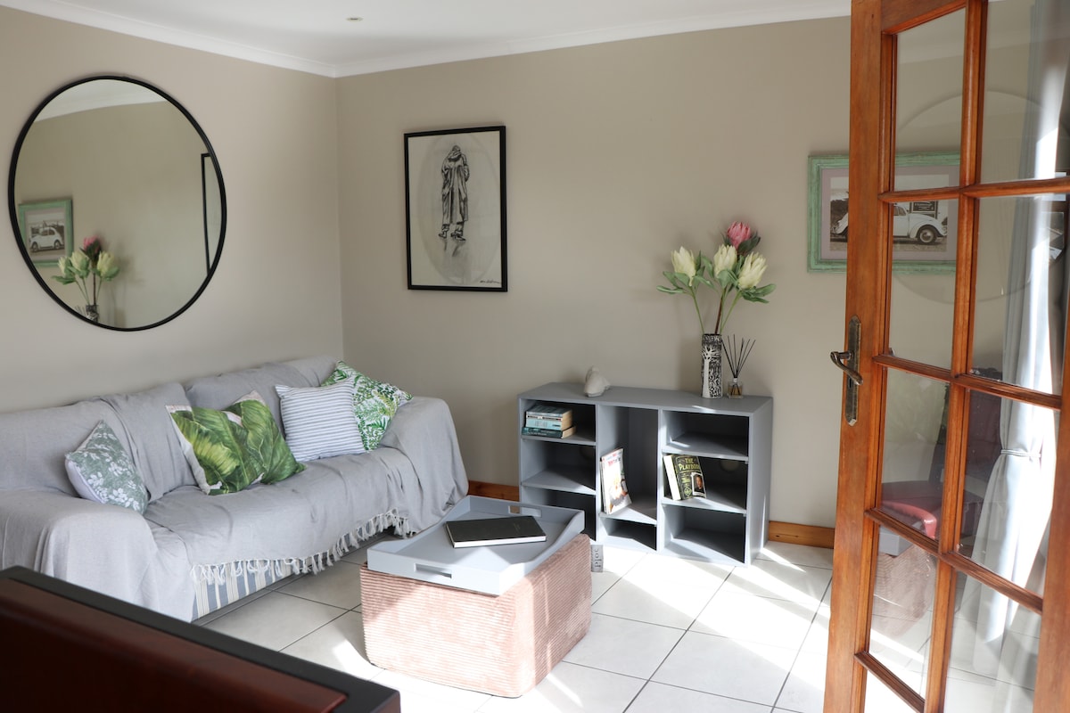 Off-street parking. Entry into premises next to garage door. Sep. entrance with security gate into guest suite which is situated at the rear of the house and is classically furnished. Large windows with natural light looking out into back garden - several species of garden birds. Microwave, fridge, kettle with tea/coffee/biscuits/milk supplied. Ample shelf and hanging space in cupboards. Modern en-suite bathroom with spacious shower. 5 minutes to shopping centre and MyCiti bus. Enjoy your stay.