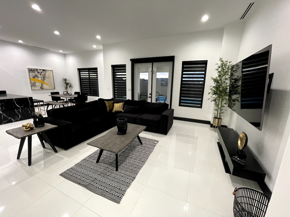 The property is divided in to two airbnbs with there own private entrence and private backyard grill outdoor dining and fire pit lounge area. None of the areas are shared they are 100% privateEnjoy your time at this stylish place make great memories at the poolside !! Pool is totally private for this unit in winter season pool temperature can vary depending on the weather outside it’s not a close pool heater is normally on from Nov to May. Enjoy your time in this special place.