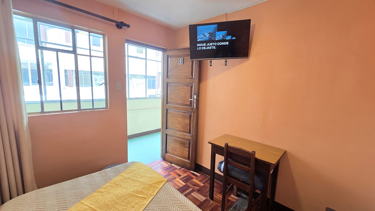 When you open the door to this place, you'll find everything you want to explore. A room with a double bed with a private bathroom located on Avenida Illampu in the tourist center of La Paz. Have a pleasant stay in a place with basic amenities, WiFi, buffet breakfast for an additional charge, cable TV, private bathroom, elevator access