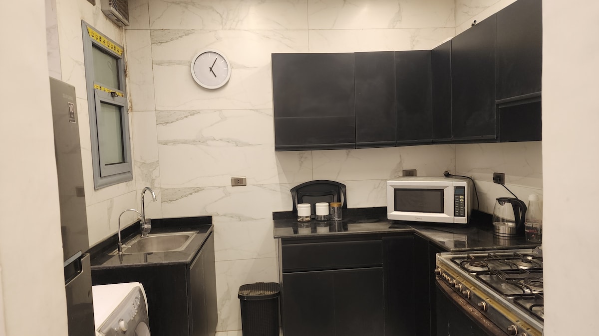 This newly renovated apartment is the perfect place for your Maadi stay. It’s a 2-min walk from golds gym studio, 5 min walk from the Grand Mall and the Field, and 233 street. The apartment is very sunny and has 2 bedrooms with a king and a queen bed. It also has a fully equipped open kitchen and one bathroom. Each room has its own AC. The apartment is on the third floor reachable with the elevator. Enjoy your stay !