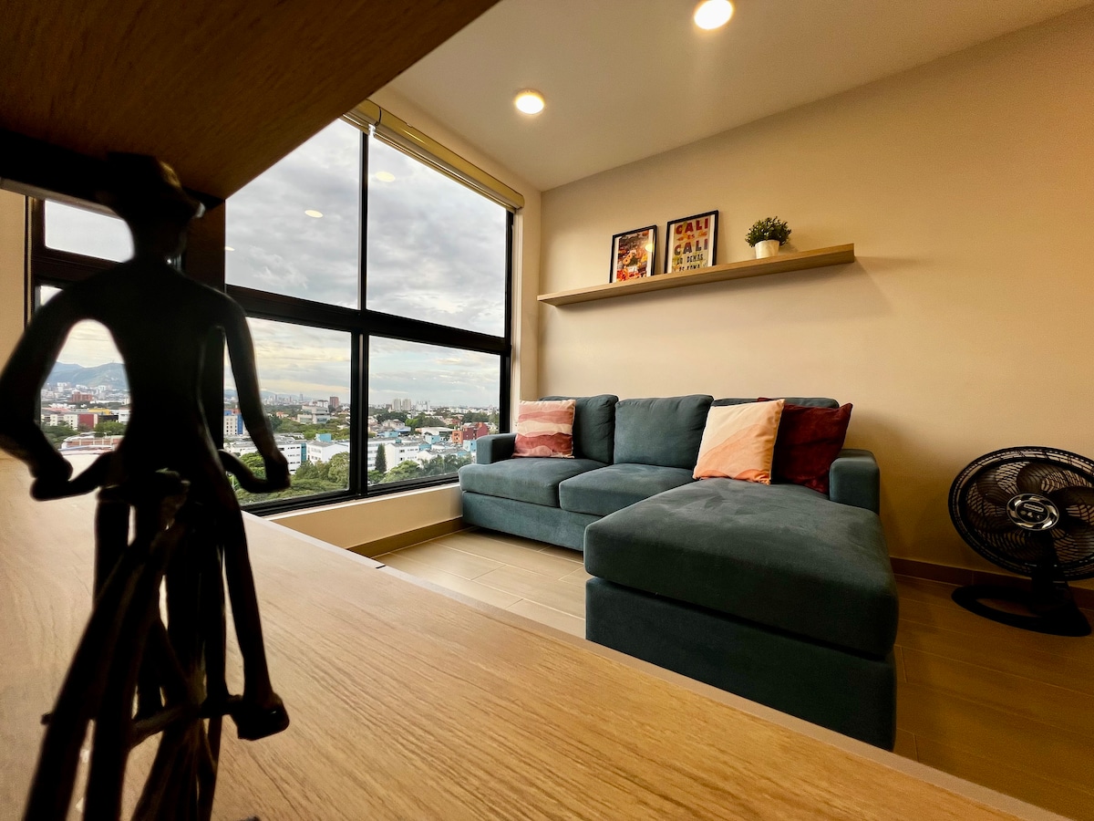 Enjoy a comfortable and stylish experience in this centrally located loft where you can enjoy the main attractions of the south and downtown Cali at comfortable distances. A residential area near the PALMETTO shopping center, FARALLONES CLINIC and SUPER INTER supermarket and a short drive from ARENA CAÑAVERALEJO, LAS CANCHAS PANAMERICANAS and the IMBANACO medical center. A convenient range of nearby restaurants to order home delivery and directly located in the new city center.